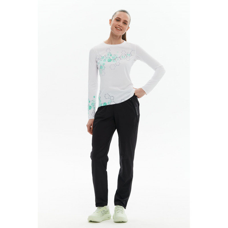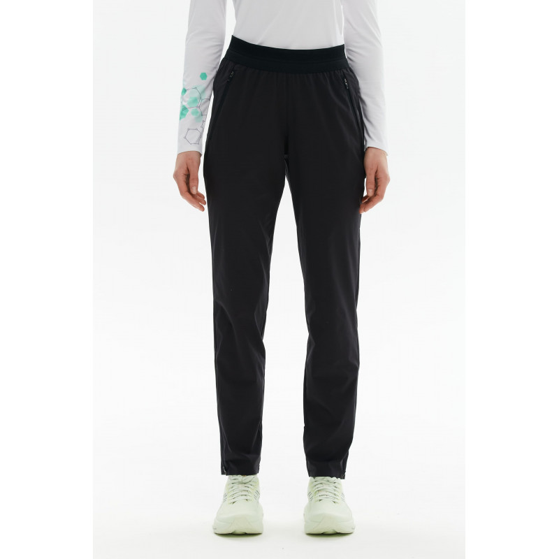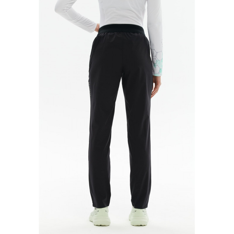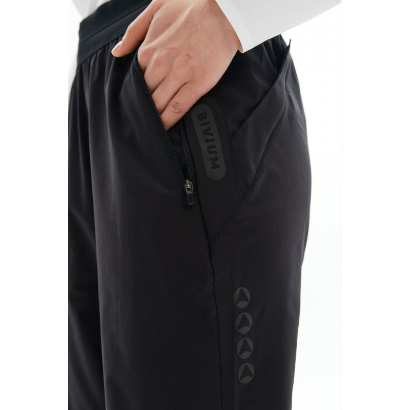 Стильные силуэт оснащен продуманными деталями. Перфорированный пояс улучшает вентиляцию и помогает телу отдавать лишнее тепло. Молнии внизу брючин позволяют регулировать посадку, а также легко надевать и снимать брюки, в том числе через кроссовки. Три функциональных кармана с сетчатой подкладкой: два боковых на молнии и один задний на клапане — чтобы всё необходимое всегда было под рукой. Готовы к движению в любом ритме.