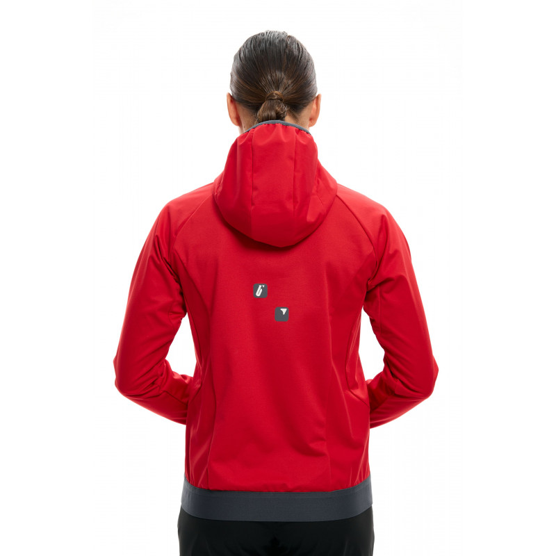 Передняя часть и рукава куртки выполнены из материала Softshell® c показателями мембраны 10000/15000, что обеспечивает высокую степень защиты от осадков и ветра. Спинка, боковые вставки, капюшон и манжеты изготовлены из эластичной ткани Thermo Biflex: она сохраняет тепло, эффективно отводит влагу и не мешает активным движениям.