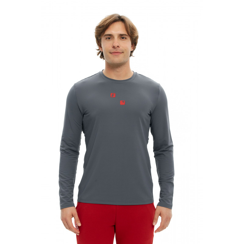 Универсальный лонгслив из легкого дышащего материала со специальным плетением на внутренней стороне.