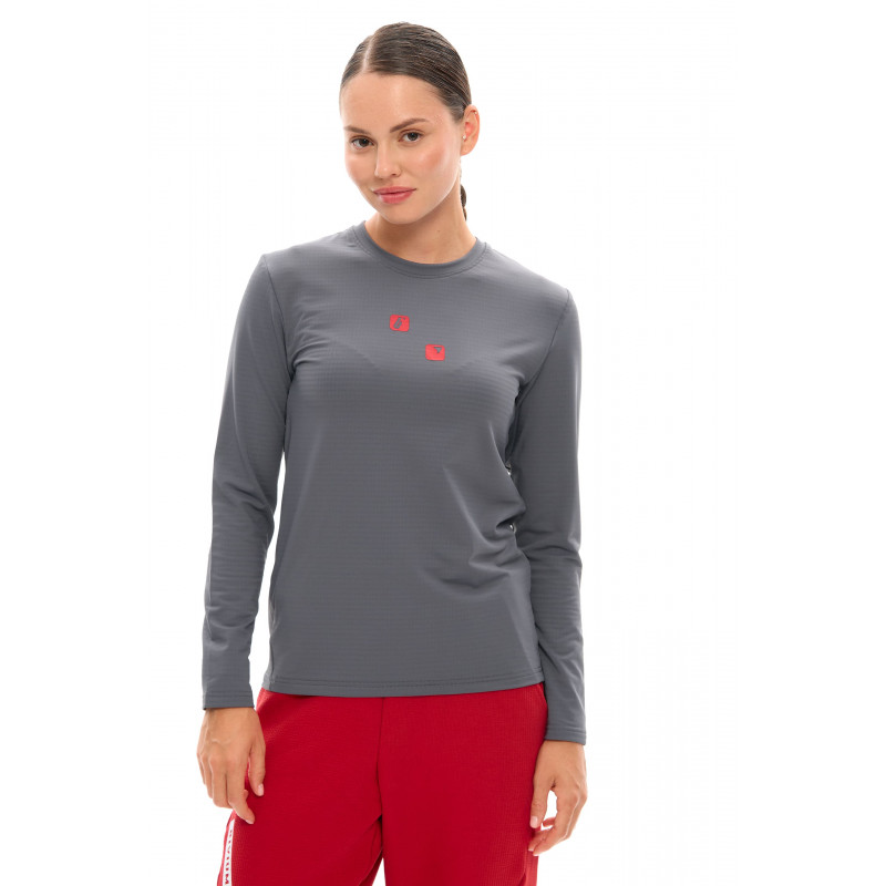 Универсальный лонгслив из легкого дышащего материала со специальным плетением на внутренней стороне.