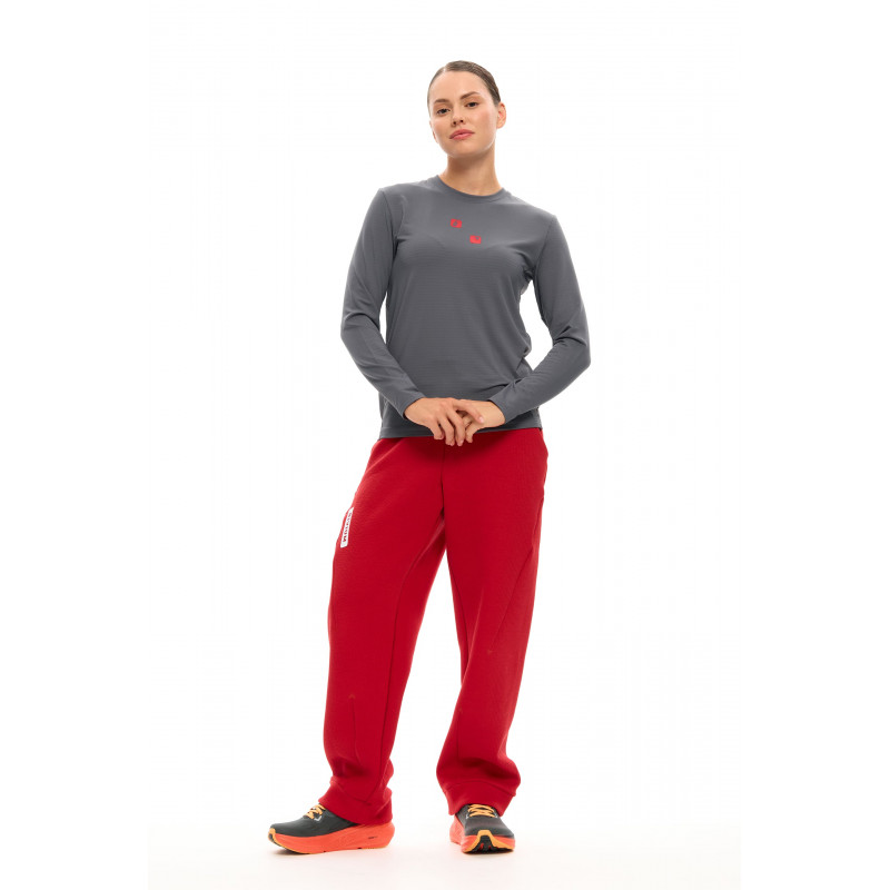 Лонгслив выполнен из легкого эластичного материала с особым плетением на изнаночной стороне, благодаря которому он отлично сохраняет тепло и отводит влагу.