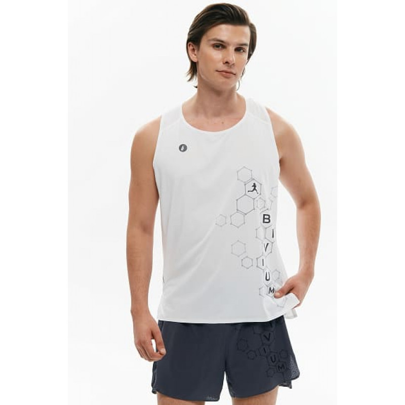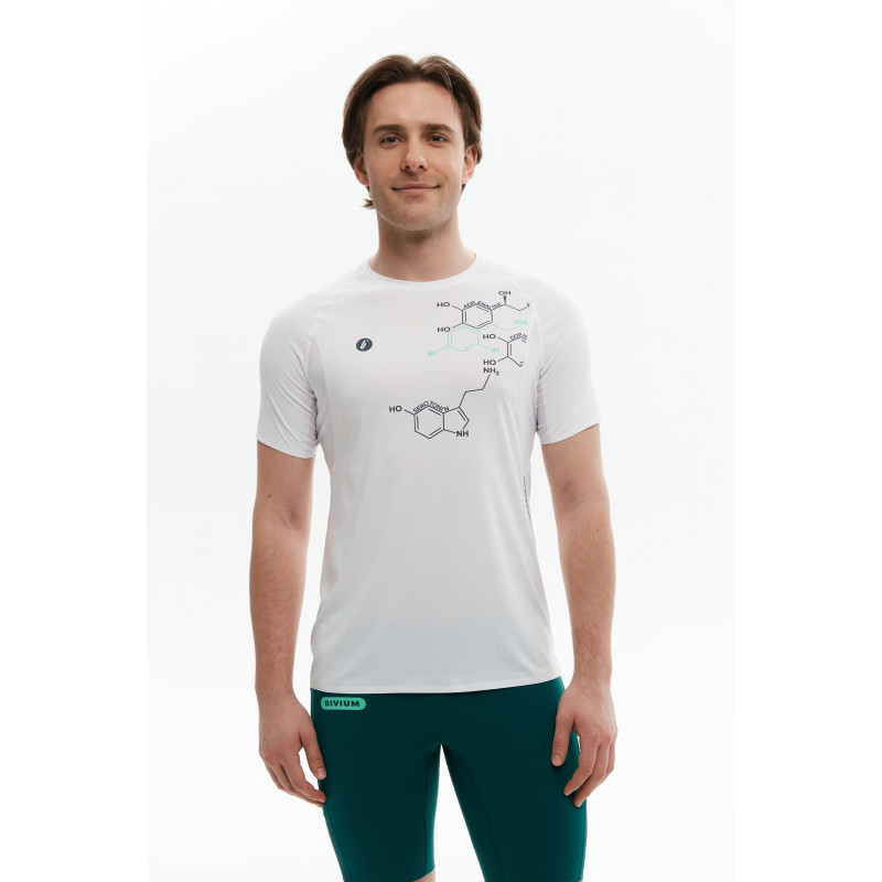 Светоотражающие элементы ловят свет в темноте, повышая безопасность тренировок. Принт с молекулами на груди отсылает к идее коллекции — поиску собственной формулы движения. Нанесён методом сублимации и сохраняет яркость со временем.