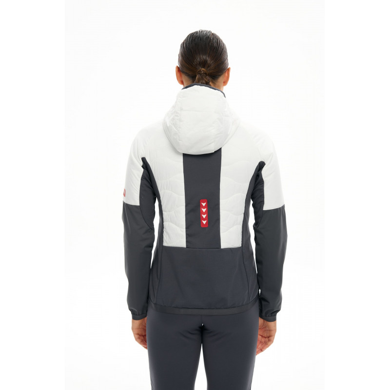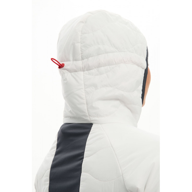 Передняя часть куртки и вставки на спинке с дизайнерской стёжкой утеплены синтепоном для максимальной теплоизоляции. Нижняя часть и центральная часть спинки изготовлены из плотного эластичного трикотажа, отлично сохраняющего тепло и отводящего влагу.
